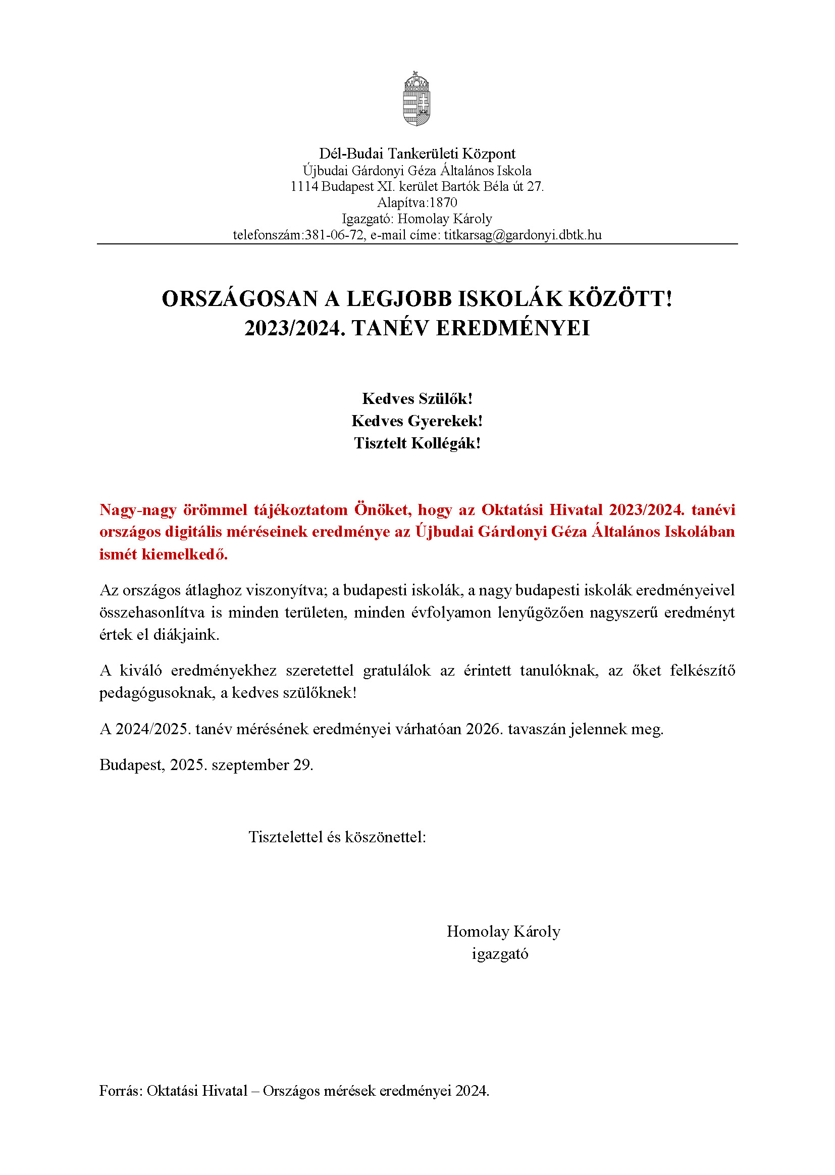 - Versenyeredmények 2024/2025-ös tanév