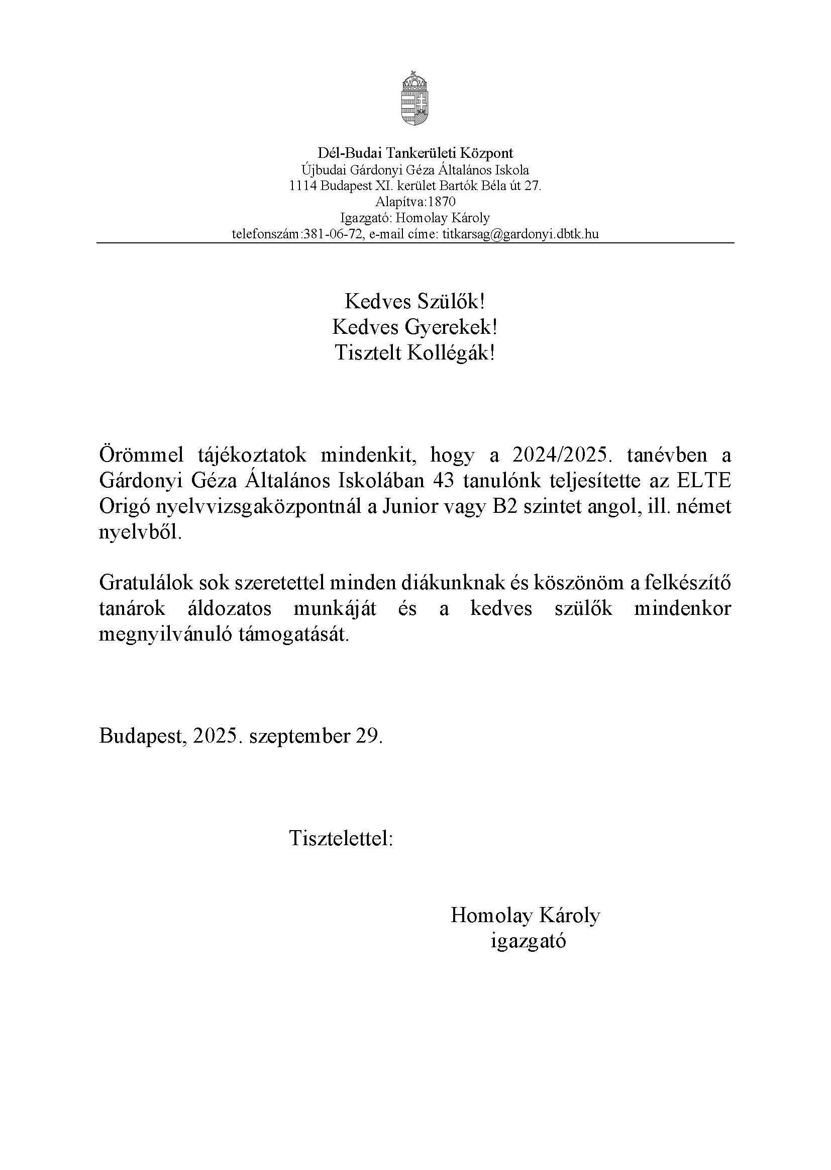 Ezúton is gratulálunk szorgalmas, okos, tehetséges tanulóinknak és kiváló nyelvtanárainknak.